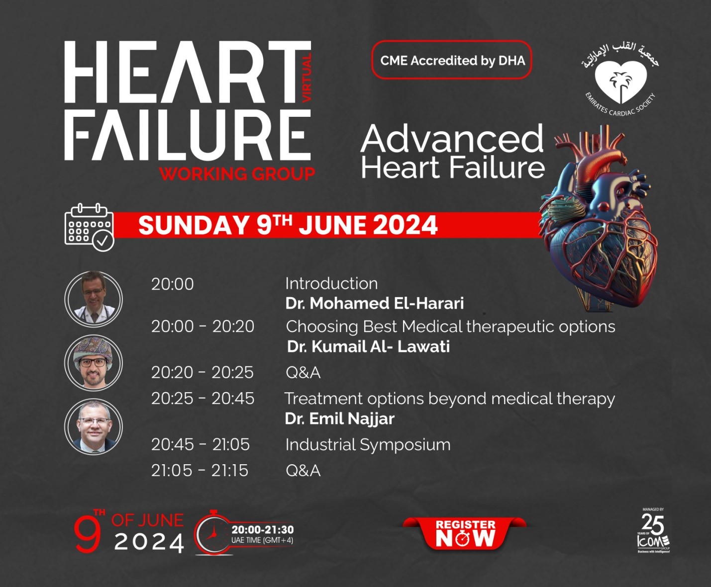 Рабочая группа по сердечной недостаточности Эмиратского общества кардиологов приглашает Российских кардиологов принять участие в вебинаре, посвященному прогрессирующей сердечной недостаточности.