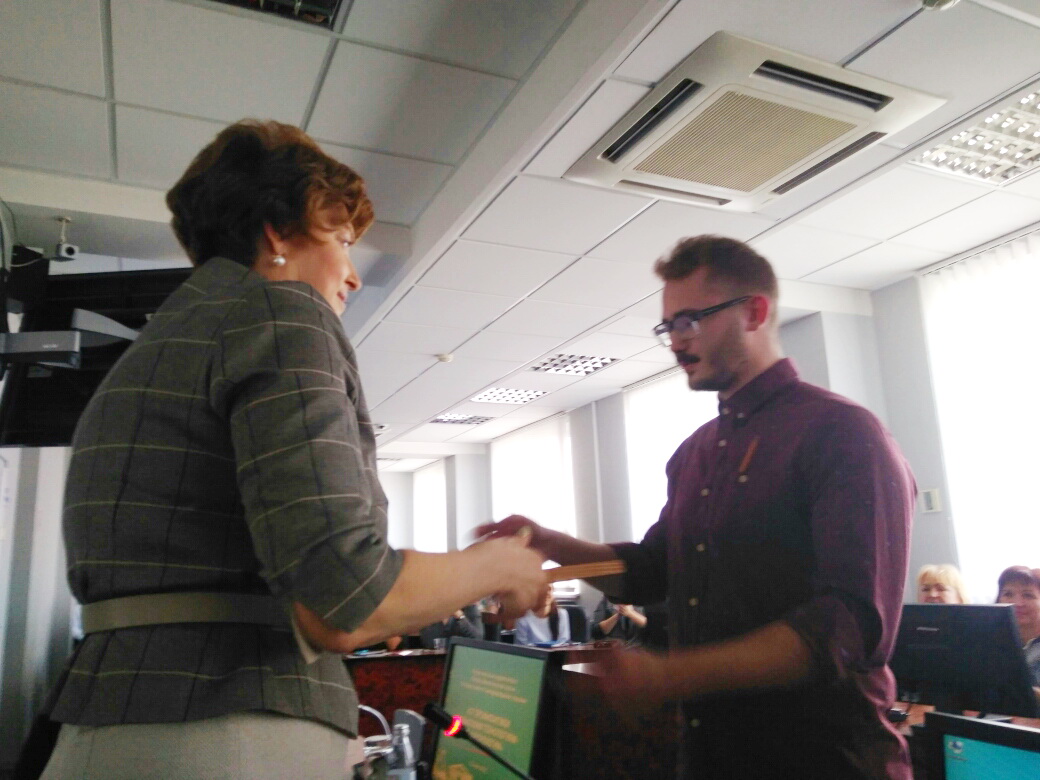(Коллега из г. Краснодара, член команды победительницы передаст Екатерине диплом)